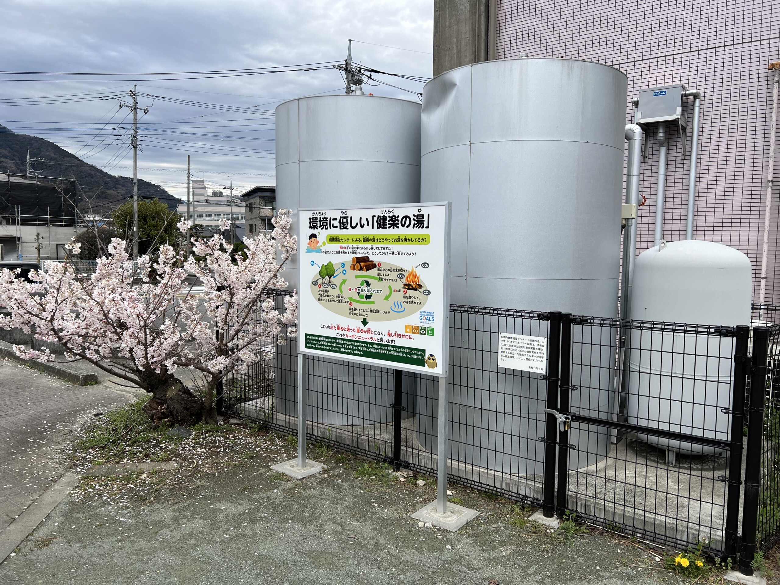 松田町には健楽の湯という公共の温浴施設があり、以前までお湯を温めるためのボイラーで灯油を使用していたんですが、未利用間伐材で代替することにしました。
