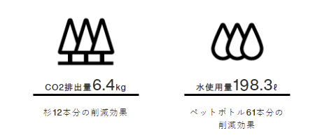 リサイクル素材は、新たに原料を生産する必要がないため、バージン素材に比べて使われる水の使用量や、エネルギー消費量がはるかに少ないのが特徴です。